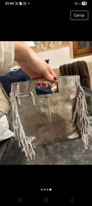 Borsa a mano con un design accattivante e moderno. - Finitura metallizzata. - Dettaglio frange sui lati. - Tracolla. - Scomparto principale.