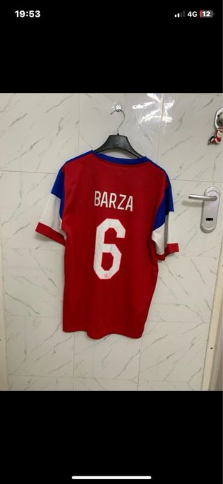 Maglia da calcio Nike con i colori degli Stati Uniti d'America. - Design a tre fasce: blu, bianca e rossa. - Logo Nike e stemma USA sul petto. - Numero 6 stampato sul davanti.