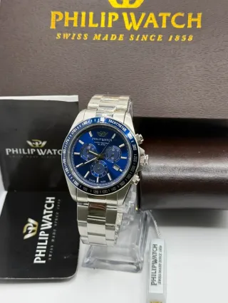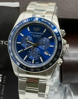 Orologio Philip Watch Caribe Sport, nuovo e completo di tutto il suo corredo. - Cassa e bracciale in acciaio inossidabile. - Quadrante blu. - Resistente all'acqua fino a 10 ATM. - Lunetta con scala tachimetrica. Nuovo con difetti vedi foto. Tutto funzionanten