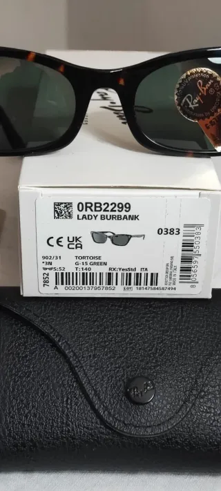 Occhiali da sole Ray-Ban modello Lady Burbank 0RB2299 - Montatura tartarugata marrone - Lenti verdi G-15 - misura 52/20. - Occhiale completo di tutto - Inclusa custodia nera Ray-Ban ecc.. - perfetto mai indossato. Nuovo senza etichetta