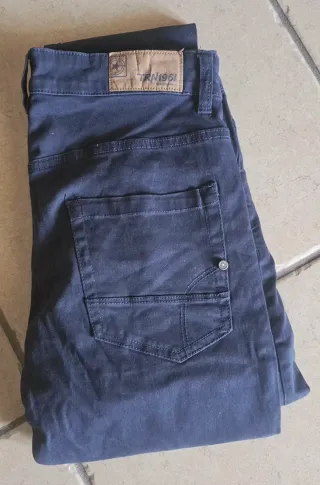 Jeans del marchio Terranova taglia 44 - Modello in denim di colore blu. - Etichetta in pelle sul retro con logo.