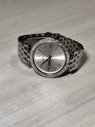 Il Michael Kors MK3190 è un orologio da donna della collezione Darci, noto per il suo stile elegante e luminoso, caratterizzato da una cassa e un bracciale in acciaio inossidabile color argento con dettagli in cristallo. Caratteristiche Principali Movimento: Al quarzo analogico. Materiale Cassa e Bracciale: Acciaio inossidabile color argento. Diametro Cassa: 39 mm. Ghiera: Impreziosita da cristalli per un tocco di brillantezza. Quadrante: Color argento con indici e lancette tono argento. Resistenza all'Acqua: Fino a 5 bar (50 metri), adatto per brevi immersioni ma non per nuoto o snorkeling intensivo. Vetro: Minerale.