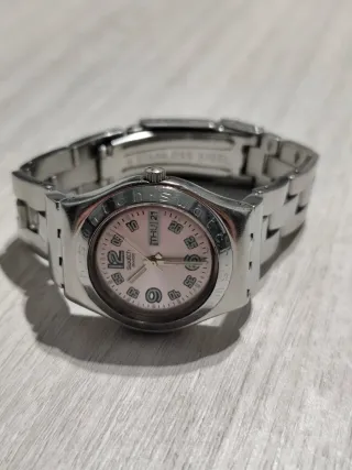 L'orologio Swatch Irony SR626SW è un modello da polso al quarzo, noto per la sua cassa in acciaio inossidabile e il design unisex. Caratteristiche Principali Meccanismo: L'orologio monta un movimento al quarzo di produzione ETA, rinomato per la sua precisione. Materiale della Cassa: La cassa è realizzata in acciaio inossidabile. Design: presenta un design versatile,colore quadrante rosa. Funzioni: include un indicatore di data/giorno. Provenienza: È un prodotto Swiss Made, a garanzia di qualità e precisione. L' orologio ha la batteria nuova ed è completamente funzionante,il vetro presenta alcuni graffi come si vede dalle foto.