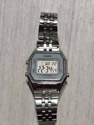 Il Casio LA680W è un orologio digitale vintage unisex noto per il suo stile retrò. Caratteristiche Principali Design e Materiali: Presenta una cassa in resina argentata e un cinturino in acciaio inossidabile con chiusura regolabile, che lo rende comodo e leggero. Display e Illuminazione: È dotato di un display digitale a cristalli liquidi con illuminazione a LED. Cronometro: Misura con precisione di 1/100 di secondo. Allarme giornaliero: Utile per ricordare eventi quotidiani. Calendario automatico: Visualizza automaticamente la data e il giorno della settimana. Formato orario: Possibilità di scegliere tra formato 12 o 24 ore.