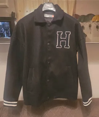 Giacca stile college, perfetta per un look casual. - Patch H bianca sul petto. - Polsini e fondo a costine con strisce bianche.