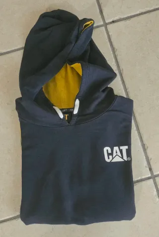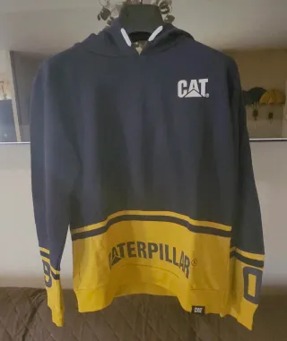 Felpa con cappuccio per ragazzo del marchio Caterpillar. Presenta un design bicolore con l'esterno blumarine e l'interno del cappuccio senape età anni 16 - Logo CAT stampato sul petto. - Coulisse bianche per regolare il cappuccio.