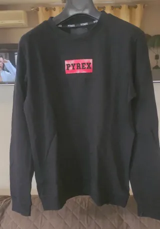 Felpa Pyrex nera con logo frontale. - Logo Pyrex rosso. - Girocollo.