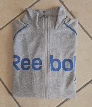 Felpa da ragazzo del marchio Reebok, con zip frontale e colletto alto. Il capo presenta un design sportivo e moderno. - Colore grigio mélange - Logo Reebok blu stampato sul davanti - Zip intera - Dettagli a contrasto sui fianchi
