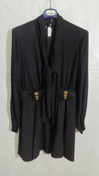 Elegante abito Elisabetta Franchi. - Colore nero. - Dettagli con bottoni dorati. - Fiocco sul collo. Taglia 46 ITA