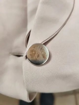 Elegante tailleur completo, perfetto per un look sofisticato. Mai indossato. C'è solo da cambiare il bottone perché purtroppo si è macchiato. - Giacca con cintura in vita. - Pantaloni a zampa - Tessuto di qualità.