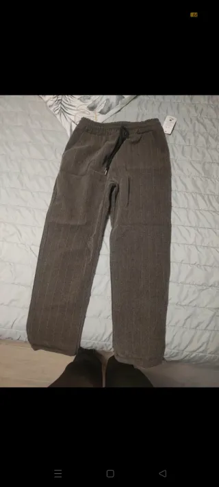 Pantaloni eleganti con fantasia a righe verticali. - Vita elasticizzata con coulisse. - Tessuto morbido e confortevole. Vestibilità stretta non è XXL come da cartellino.