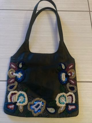 Elegante borsa da donna con una splendida decorazione floreale ricamata a mano - Motivo floreale ricamato con perline e paillettes. - Design unico e colorato. - Manici comodi per il trasporto.
