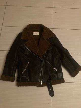 Giacca stile biker con dettagli in pelliccia sintetica. - Collo ampio e foderato. - Chiusura frontale con zip. - Tasche laterali con zip. - Cintura regolabile sul fondo.