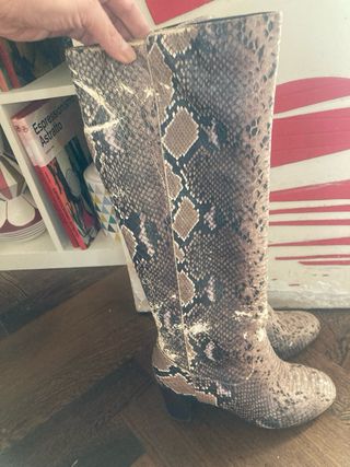 Stivali pitonati beige e marroni
