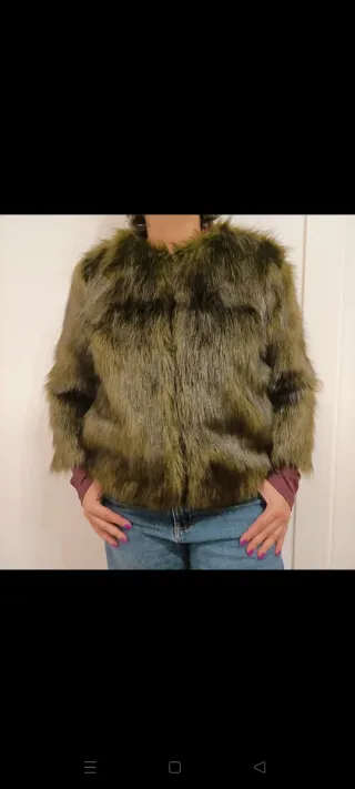 Morbida pelliccia ecologica in un bel verde muschio. - Materiale morbido e piacevole al tatto. - Design moderno e versatile. La pelliccia è folta e soffice. Usata pochissimo, tenuta in condizioni eccellenti (come nuova). Fodera interna in raso liscio e confortevole, color verde militare abbinato. Chiusura frontale con piccoli ganci a scomparsa (visibili nelle foto della fodera).