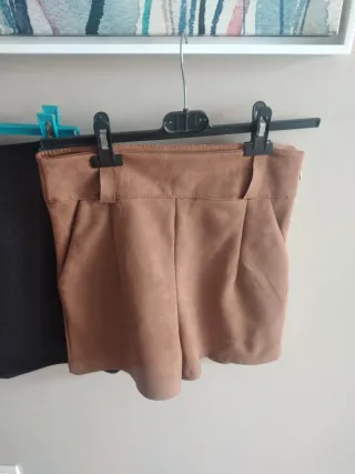 Set composto da una gonna nera e un paio di pantaloncini color cuoio. - Gonna nera. - Pantaloncini color cuoio.
