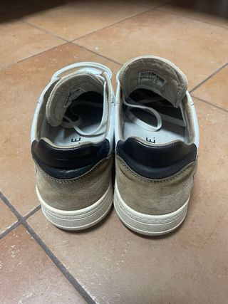 sneakers DATE in pele colore bianco e marrone, inserto nero sul tallone. ottime condizioni