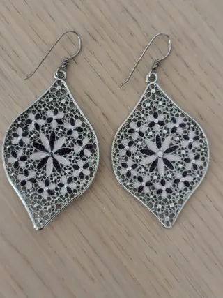 Eleganti orecchini in filigrana con dettagli color viola e lilla Argento 925 rodiato punzonato 6x3 - Design a goccia. - Lavorazione traforata. - Dettagli floreali.