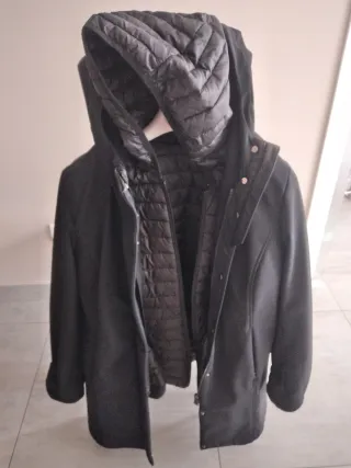 Elegante giubbotto da donna 2 in 1 con un design moderno e pratico, la parte interna si stacca e diventa un 100 g.Perfetto per le giornate più fresche. - Cappuccio imbottito - Chiusura frontale - Dettagli trapuntati