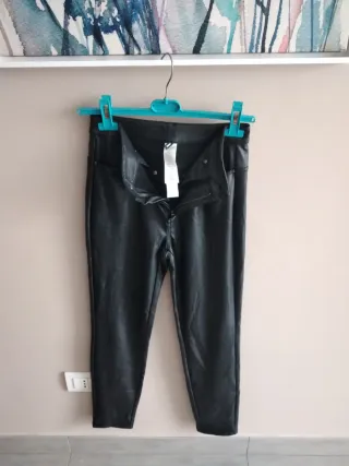 Leggings da donna in ecopelle. - Vita alta - Chiusura con zip e bottoni - Vestibilità aderente