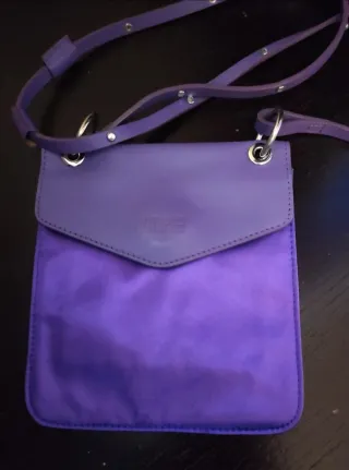 Elegante borsetta Mariella Burani con logo inciso. - Colore nero e viola. - Materiale tessuto e pelle.