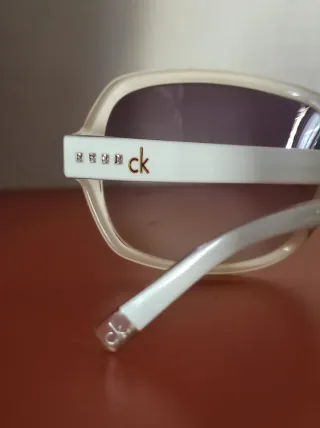 Eleganti occhiali da sole Calvin Klein con montatura bianca e dettagli dorati. Le lenti sfumate offrono una protezione moderna. - Montatura bianca - Dettagli dorati - Lenti sfumate