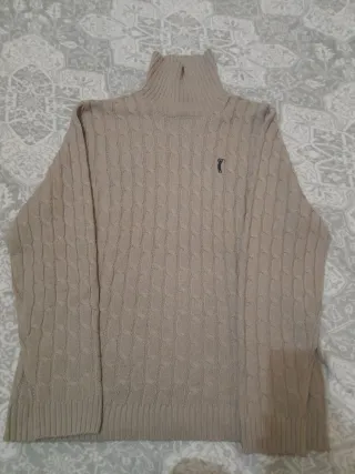 Maglioncino vintage unisex con collo alto e trama a trecce. Un capo versatile e alla moda. - Design a collo alto. - Trama a trecce. - Logo ricamato sul petto.