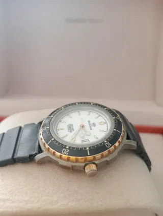 Vendo Orologio da polso Berios, modello sub, con ghiera girevole, resistente fino a 660 geset, corona a vite, cassa acciaio, movimento al quartz funzionante , batteria appena messo.. cinturino di gomma, calendario sul quadrante..