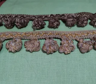 Bellissima passamaneria cipollina con nappe decorative.scampoli da 2,40 NB. Il prezzo si intende per uno scampolo - Colore: marrone e oro. - Design elegante e raffinato.