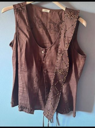 Canotta in puro lino con cintura ricamata etnica