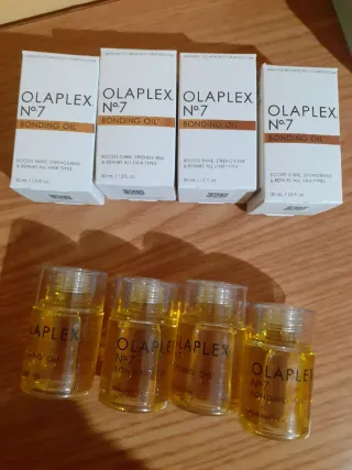 Set di 4 flaconi di Olaplex N.7 Bonding Oil. - Ogni flacone contiene 30 ml / 1.0 fl. oz. - Promuove lucentezza, forza e riparazione per tutti i tipi di capelli.