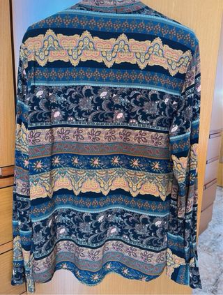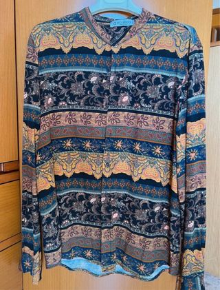 Camicia a maniche lunghe con una fantasia colorata e vivace. Taglia M, ma veste S. - Collo alla coreana - Chiusura con bottoni - Maniche lunghe