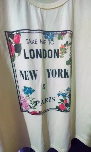 T-shirt da donna con una stampa grafica sul davanti. - Non spedisco con InPost Locker Point. - Stampa Take me to London, New York & Paris con fiori. - Girocollo. - Maniche corte.