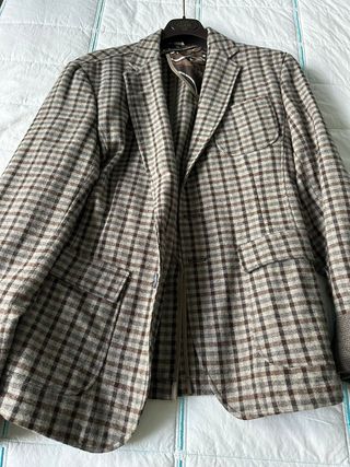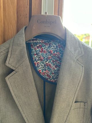 Completo giacca e pantalone della UES ZEE taglia 46 color tortora indossato l'anno scorso ad un matrimonio e ritirato dalla tintoria. Prezzo di acquisto 350€.