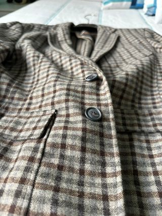 Elegante giacca in lana con un classico motivo a quadri. Giacca lana tg 48 Università della Moda come da foto perfetta con interni a motivo - Fantasia a quadri nei toni del beige e marrone. - Taglia 48.