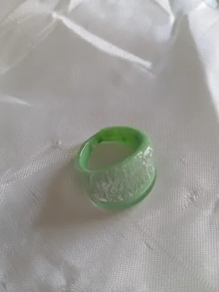Anello artigianale in vetro di Murano, con un design unico che unisce il verde brillante a dettagli argentati. - Realizzato a mano in vetro di Murano. - Finitura con inclusioni argentate.
