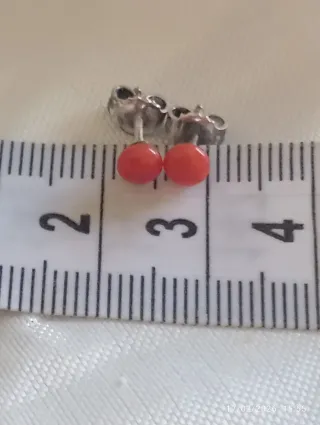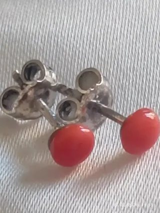 Deliziosi orecchini antichi con corallo. - Realizzati in argento. - Pietre di corallo naturali. Ideali per chi non ama orecchini grandi o per bambine