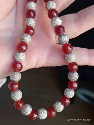 Elegante collana vintage con sfere di giada Malaysia rubino sfaccettata e sfere satinate in argento 925 ,la susta è realizzata con la stessa lavorazione . La giada rubino ha un colore borgogna splendido - Elementi sferici in argento martellato. - Design unico e raffinato. La collana è molto pesante