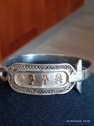 Bracciale Egiziano Oro 14kt e Argento Anni '70