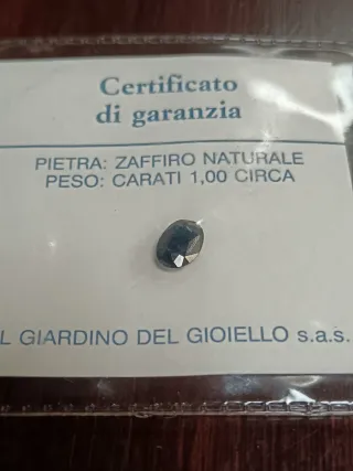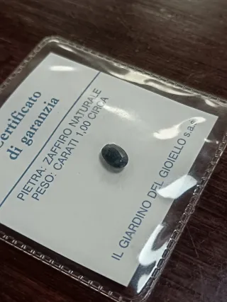 Zaffiro naturale certificato. - Pietra: Zaffiro naturale - Peso: Carati 1,00 circa - Certificato di garanzia