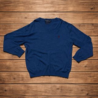 Maglione Polo Ralph Lauren Blu V-neck Cotone L