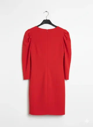 Elegante abito da donna con maniche a sbuffo. - Colore rosso vivace. - Taglio moderno e femminile. - Tessuto di buona qualità.