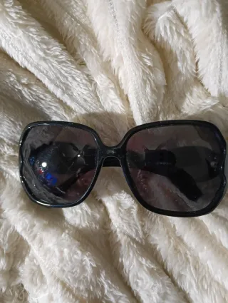 Occhiali da sole con montatura nera. - Design audace e alla moda. - Lenti scure per una protezione ottimale.