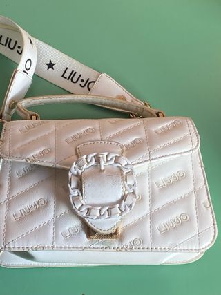 Borsetta Liu Jo in ecopelle bianca, perfetta per ogni occasione. - Tracolla regolabile con logo. - Chiusura con fibbia decorativa. - Design trapuntato con logo inciso.