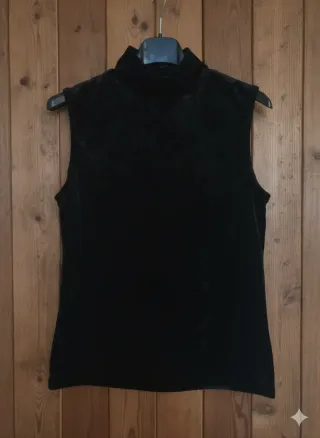 Top smanicato in velluto, perfetto per un look elegante. - Tessuto morbido e piacevole al tatto. - Design senza maniche. - Collo alto.