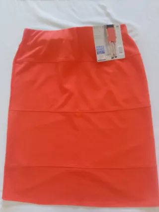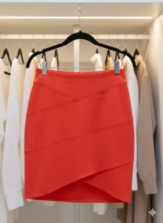 Gonna da donna nuova, mai indossata. - Colore rosso vivace. - Design moderno con cuciture a vista. - Lunghezza sopra il ginocchio. - Vestibilità aderente.