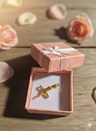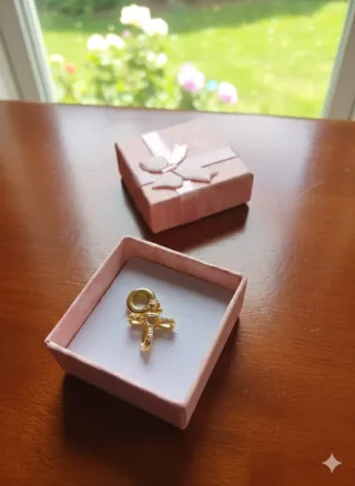 Descrizione: Charm pendente a forma di croce impreziosita da piccoli punti luce (zirconi), con un cuore centrale liscio. L'anellino passante (bead) presenta l'incisione laterale "FOREVER" (Sempre). Materiale: Argento sterling S925 (come indicato dal punzone visibile nelle foto) con placcatura in oro giallo o finitura dorata. Stile: Compatibile con bracciali tipo Pandora (collezione Moments) o indossabile come ciondolo su una collana. Significato: Unione di fede (croce) e amore eterno (cuore + scritta "Forever").