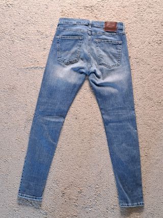 Jeans da uomo Hollister in denim blu. Modello classico e versatile. Taglia 30W 30L - Vestibilità slim. - Dettagli con impunture a contrasto. - Patch in pelle sul retro.