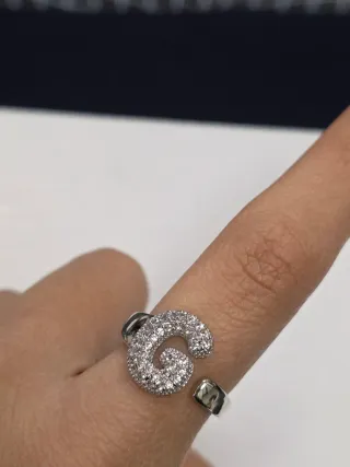 Elegante anello con iniziale G tempestata di zirconi. - misura anello: regolabile - materiale: acciaio inox