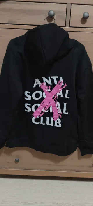 Felpa con cappuccio del brand Anti Social Social Club. Calza M - Logo frontale con nastro rosa. - Tasca a marsupio.